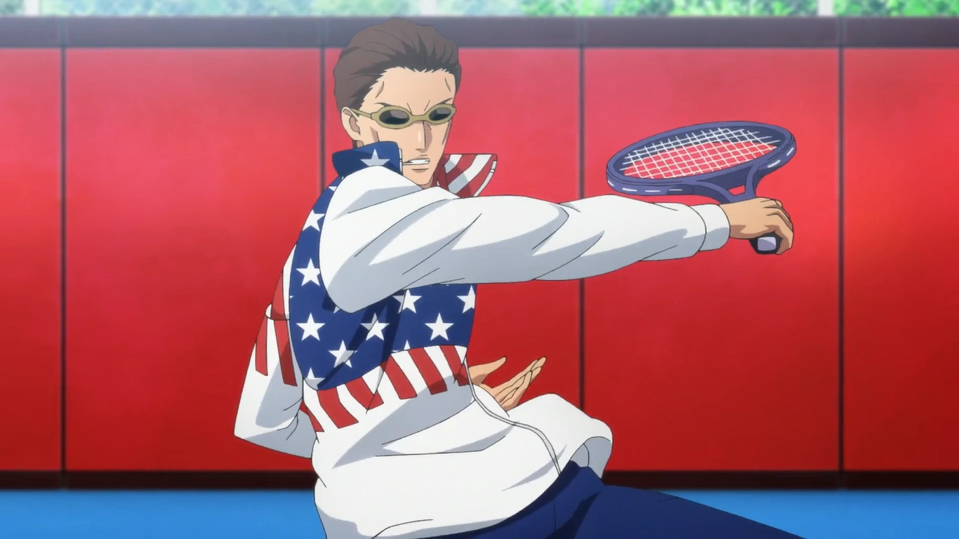 - He makes a few cameo appearances but isn't named in the manga as of yet. Instead, his name is found in this image: http://princeoftennis.wikia.com/wiki/File:US_Team.png