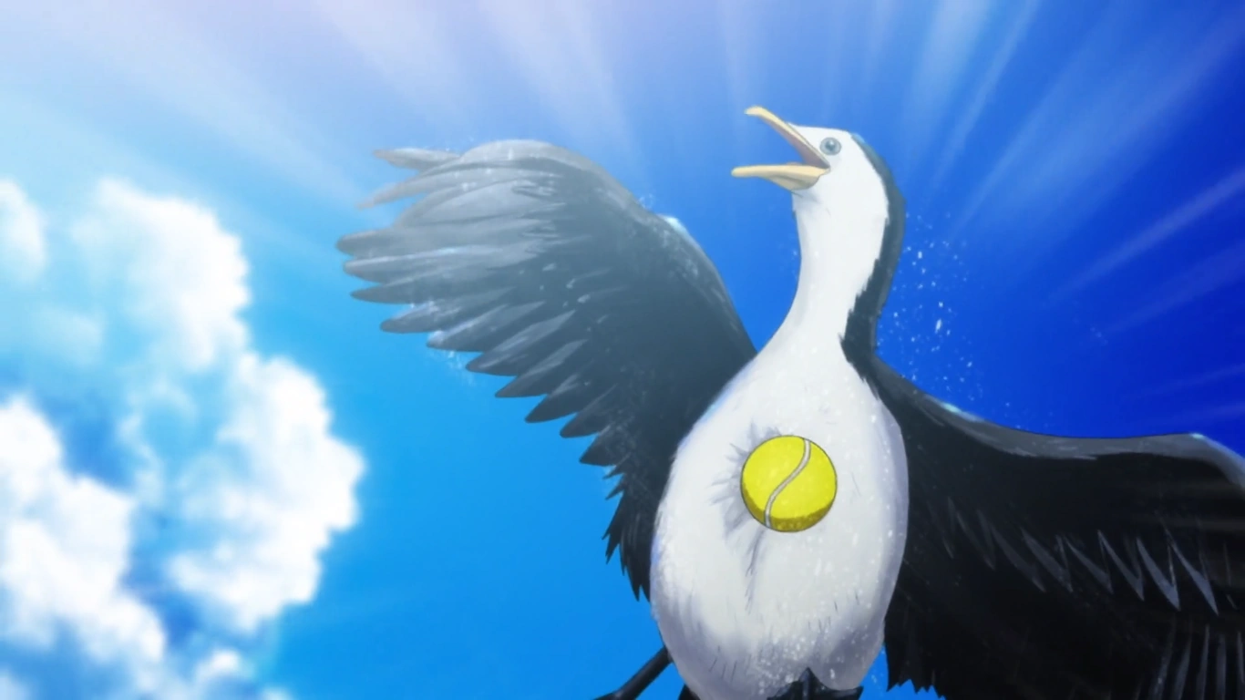 During the changeover, Dorgias appears to be too exhausted already, spilling his water bottle. Chris then approaches him, saying that he still hates him but he should just fight until the end. The other Australian members then cheers him on after hearing Noah's story about Dorgias. Dorgias then gets more resolve to fight and fights more evenly with Kintaro. Atobe comments then that this happens because Dorgias isn't fighting by himself anymore. Noah adds that Dorgias had been able to fulfill their dream of playing doubles together. Dorgias comments to himself that it has been a long time already since he felt that excitement while playing tennis and that he never expected it to be because of a foreign kid. As Dorgias threatens to take advantage, Kintaro counters and reminds him of how Ryoma left the team without settling teams with him. Kintaro let out all this frustration in one shot which Dorgias managed to return back, however it had too much force that it is supposed to go outside. Surprisingly, the ball hits a bird (Pale Thrush Child Cormorant) and made it inside. The umpire declares that the game should be redo. Kintaro was confused as it should be just be given to Dorgias as a point. Dorgias, however, gets the bird and declares that it would be Kintaro and his team's win. Chris then asked to call the nearest veterinarian available. Noah comments that it is just Dorgias nature to be caring about animals. The match then ends with Dorgias forfeiting the match and with Japan's straight wins against Australia.