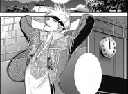 Julio is seen to have an interest in finding out what Medanore's secret is. This is further strengthened in Golden Age 385 when he was asked by Silva if why does he have a great interest in learning Medanore's personality. They are later intrigued when they met the twins Raul and Renato, the kids who Silva buys blueberry pastries for. The twins are also tennis players whom Silva and Julio helped to improve their skills. At first, Julio amazed the twins by showing his accuracy skill in tennis by hitting a tennis ball through a small hole. Silva, meanwhile, used his acrobatics to return the ball from the sidewalk back to the tennis court. They later played a game against the twins and helped them improve a shot which was previously always thrown out. The twins later shared to them that a man wearing the same uniform as them named Medanore visited them twice, however, they noticed that Medanore is different when they visited them for the second time. That intrigued Julio and the next day, they talked again to the twins as Silva clarified if Medanore had a dual personality. The twins then stated that Medanore does not have a dual personality, but instead, there are two different Medanores.