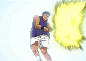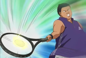 Kei Tanishi (田仁志 慧, Tanishi Kei) possesses a large body, which allows him to utilize his "Big Bang" serve that uses his weight and the gravity from falling in order to make a nearly nonreturnable serve. It takes a lot of stamina, which decreases its power over time, allowing it to be returned, which was taken advantage of by Ryoma. He is one of the former rivals of Ryoma who return to help him regain his memories.