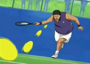 All the Middle Schoolers are told to pair up with one another for a match, however the Mental Training Coach orders all pairs to play against each other in Singles tie-break elimination match where the loser is sent home from the camp. Tanishi plays against his partner Chinen Hiroshi and is defeated in an extremely tight match 15-17.